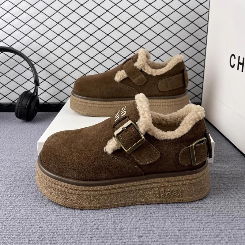 Меховые замшевые туфли на плоской подошве на платформе, женские зимние теплые туфли из плюша и хлопка, классическая повседневная обувь, зимняя мода 2025 года, удобные модные туфли-лодочки для женщин 40