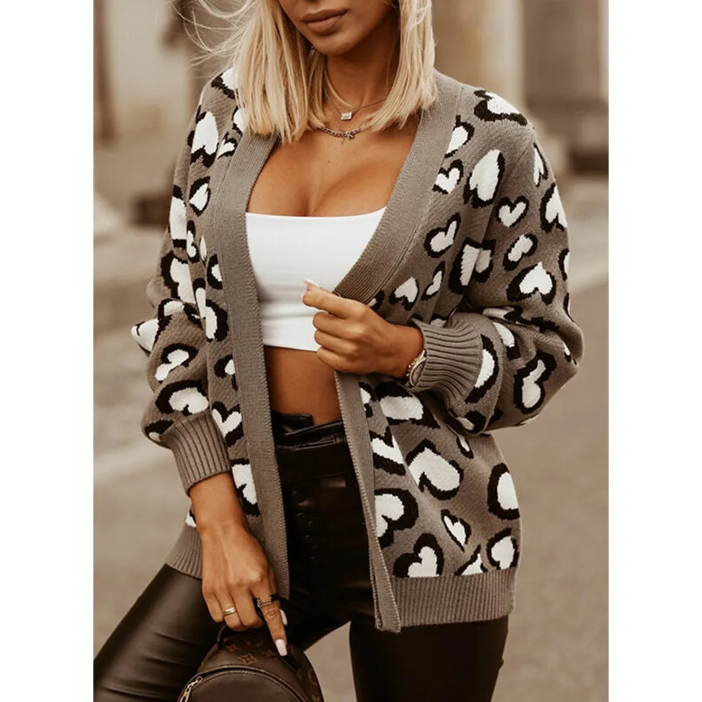 Women's Temperament Trendy Style Loose Outer Wear Love Knit Cardigan 2021 Fall/winter Sweater Women's Outer Wear