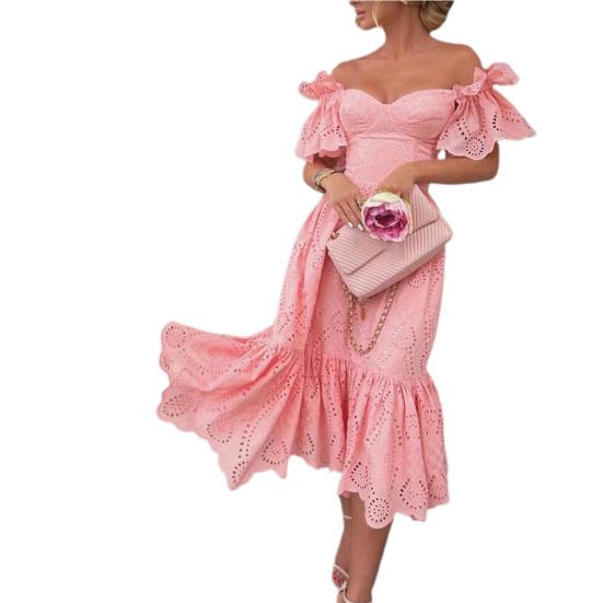 Миди-платье с вырезами, А-силуэта, сексуальное, с открытыми плечами, приталенное, для вечеринки, для свиданий M розовый