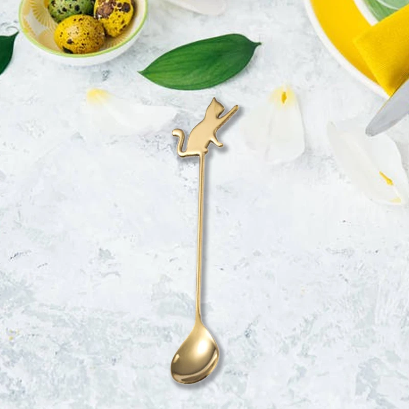 Микшерная ложка 304, столовая посуда из нержавеющей стали, серебристая/титановая, золотистая/Розовая/черная/красочная ложка с кошкой для пер...