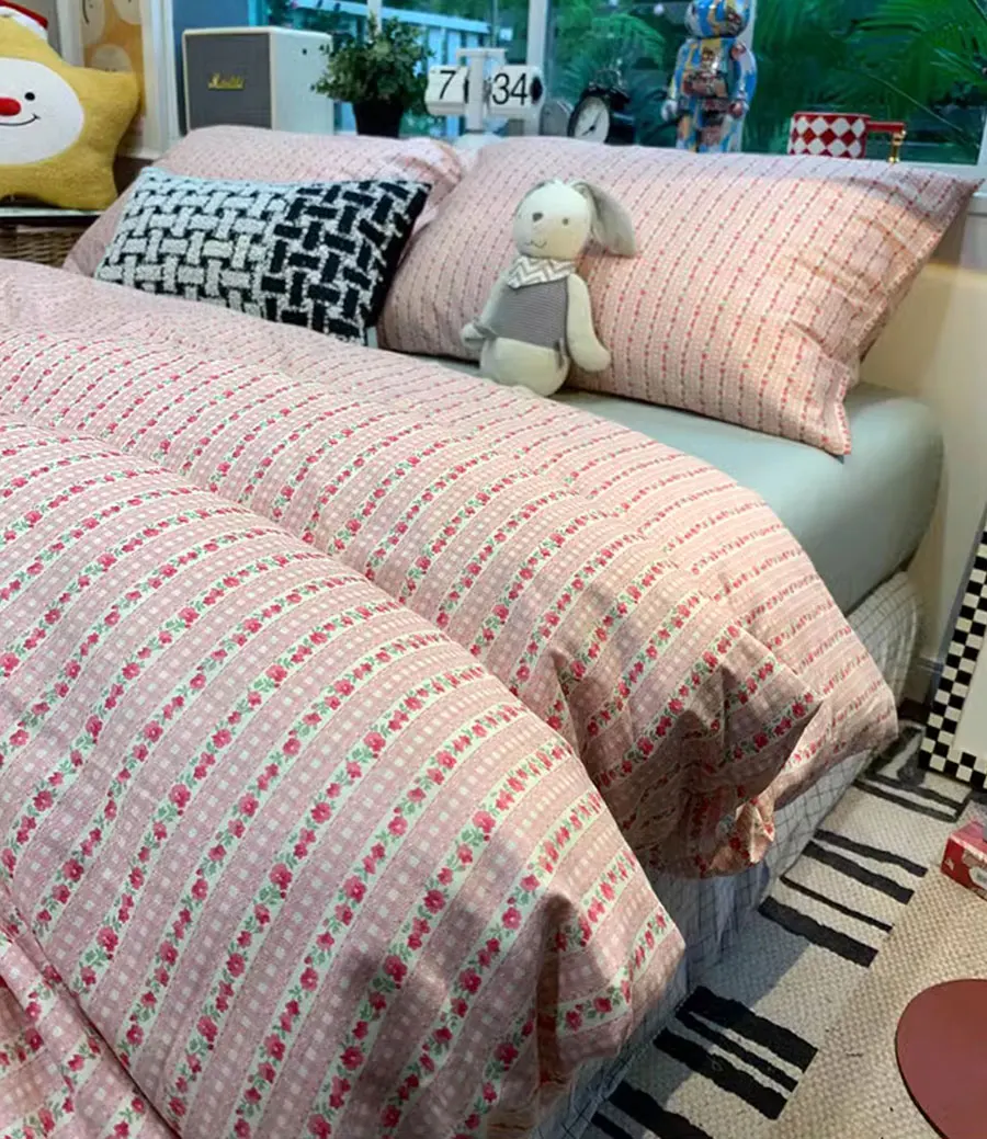 Милая Красная Цветочная зеленая односпальная, двухспальная, односпальная, с цветочным принтом, хлопковая домашняя текстильная простыня, наволочка, пододеяльник