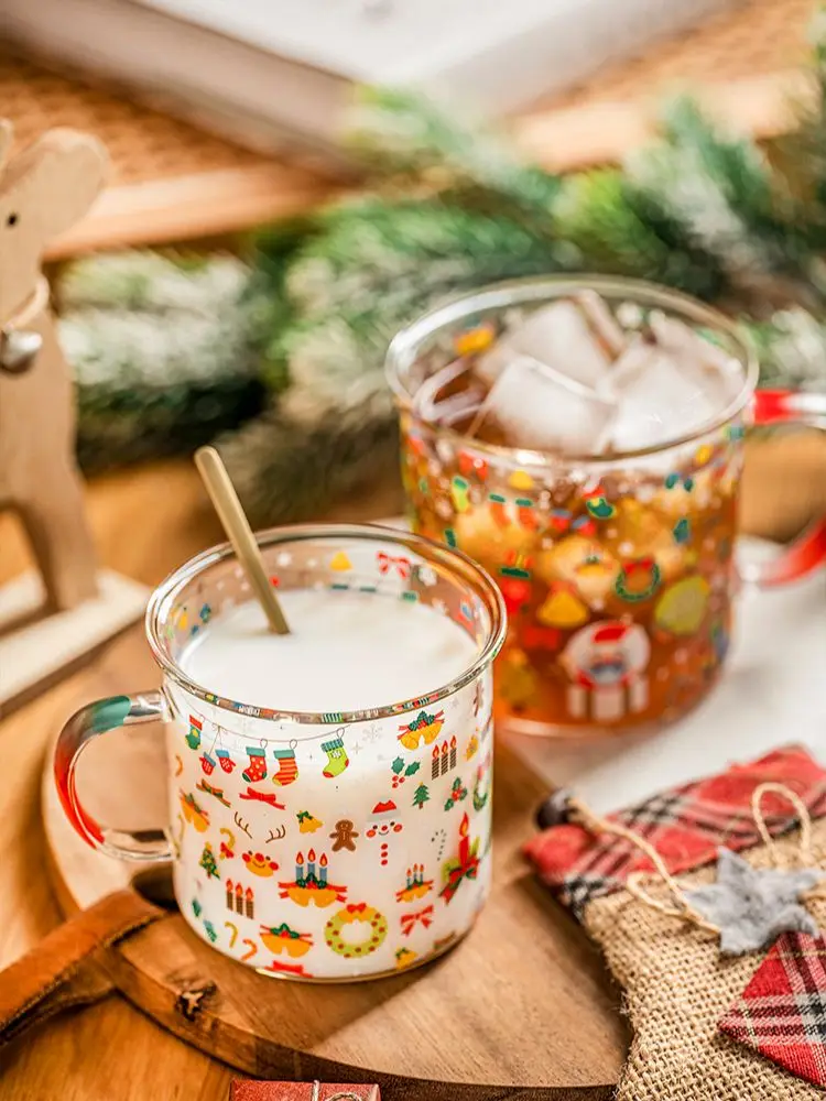 Милая Рождественская стеклянная кружка, чашка с принтом, термостойкие очки, чашки для завтрака с молочным кофе, подарок для детей, детей, влю...