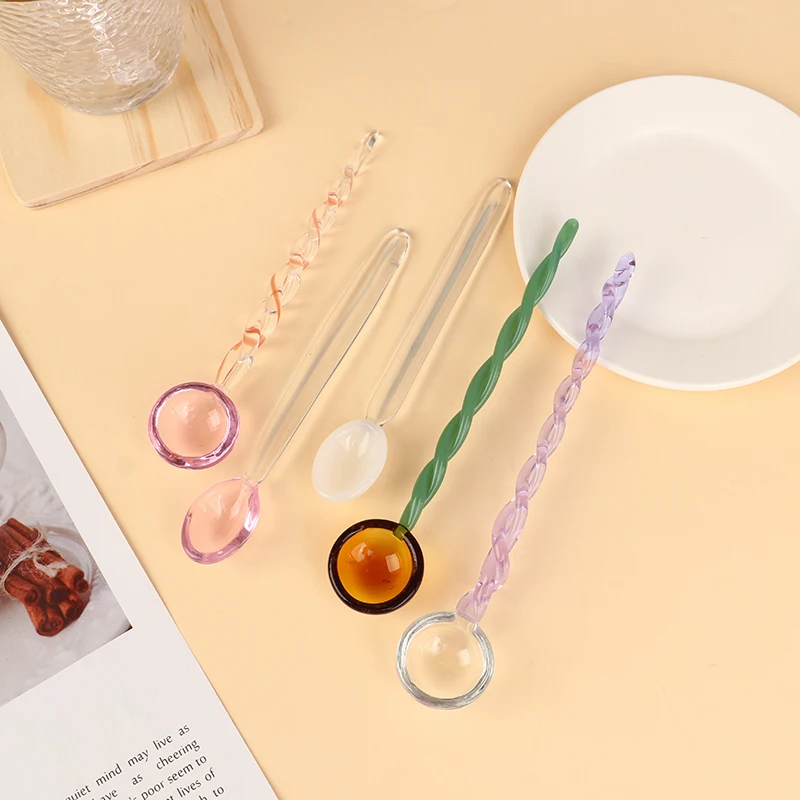 Милая Хрустальная десертная ложка для конфет, домашняя стеклянная спиральная ложка, ложка для кофе, ложка для перемешивания молока, кухонная Прямая поставка