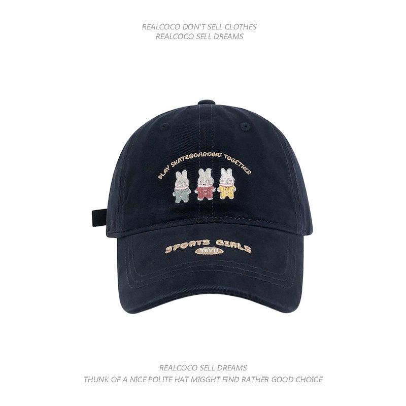 Милая бейсболка с вышитым кроликом, весенняя и осенняя, для студенток, повседневная, универсальная, солнцезащитная, показывающая лицо, маленькая кепка M(55-58cm) тёмно-синий