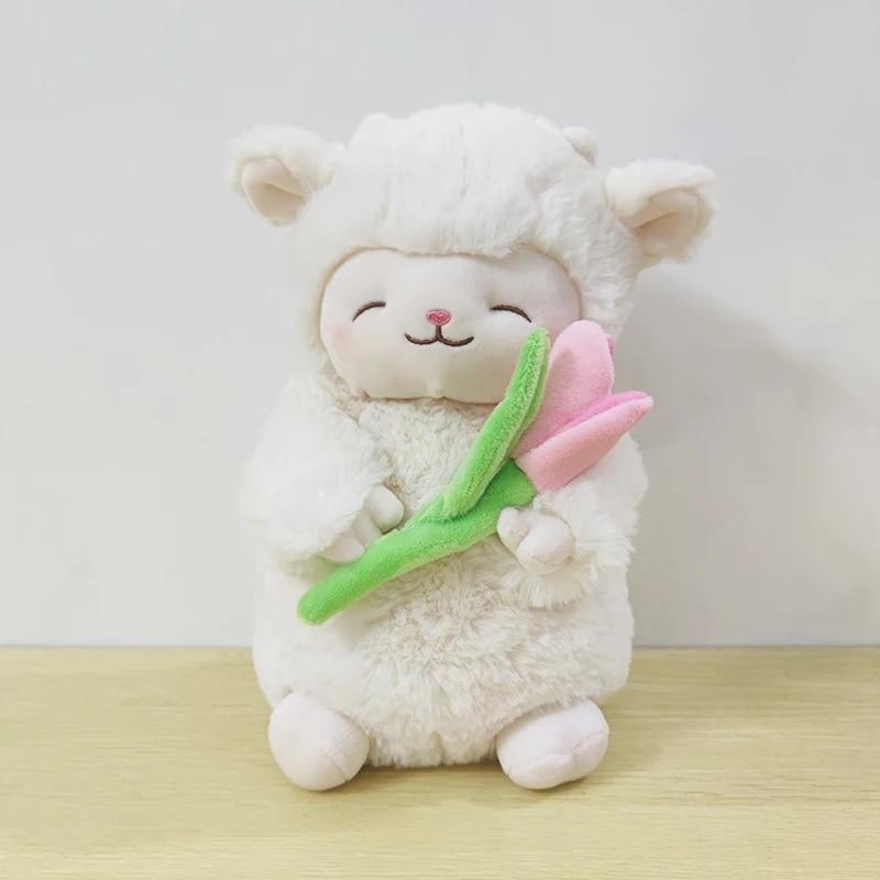 Милая белая овца Лам держать цветок тюльпана мягкая мягкая кукла-обнимашка плюшевая игрушка для девочек подарок на день рождения и Рождество 1 шт.
