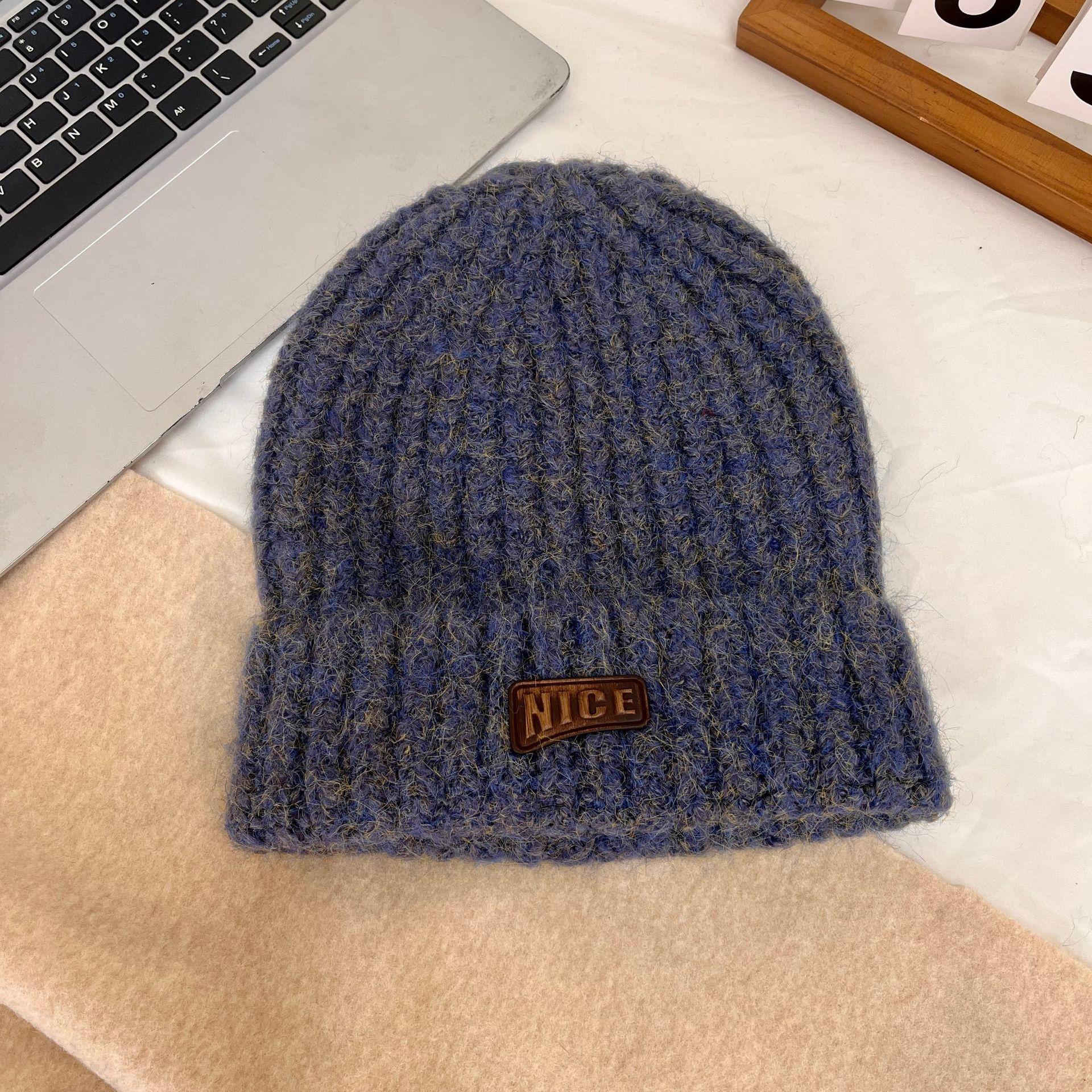 Милая и милая вязаная шапка, новая тканевая этикетка, женская осенне-зимняя теплая толстая шерстяная шапка, универсальная холодная шапка для мужчин M(56-58cm) хаки