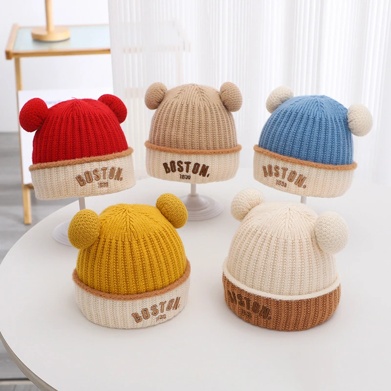 Милая детская вязаная шапка, зимняя теплая детская шерстяная пуловерная шапка с бархатной подкладкой, детская шапочка для детей 3-20 месяцев, вязаный крючком чепчик для мальчиков и девочек
