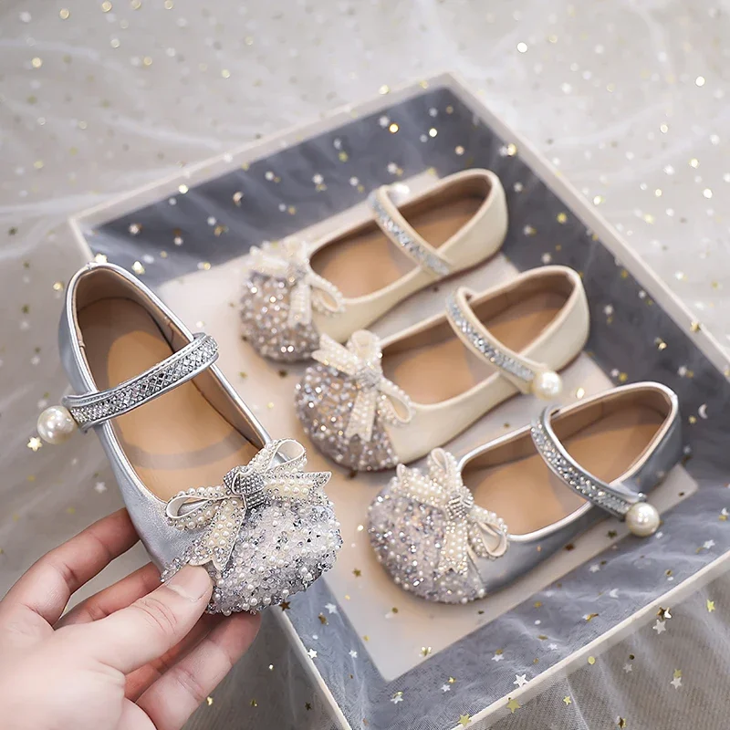 Милая детская модная кожаная обувь для девочек, новая весенне-осенняя детская праздничная обувь, модные повседневные модельные туфли принцессы с блестками на плоской подошве