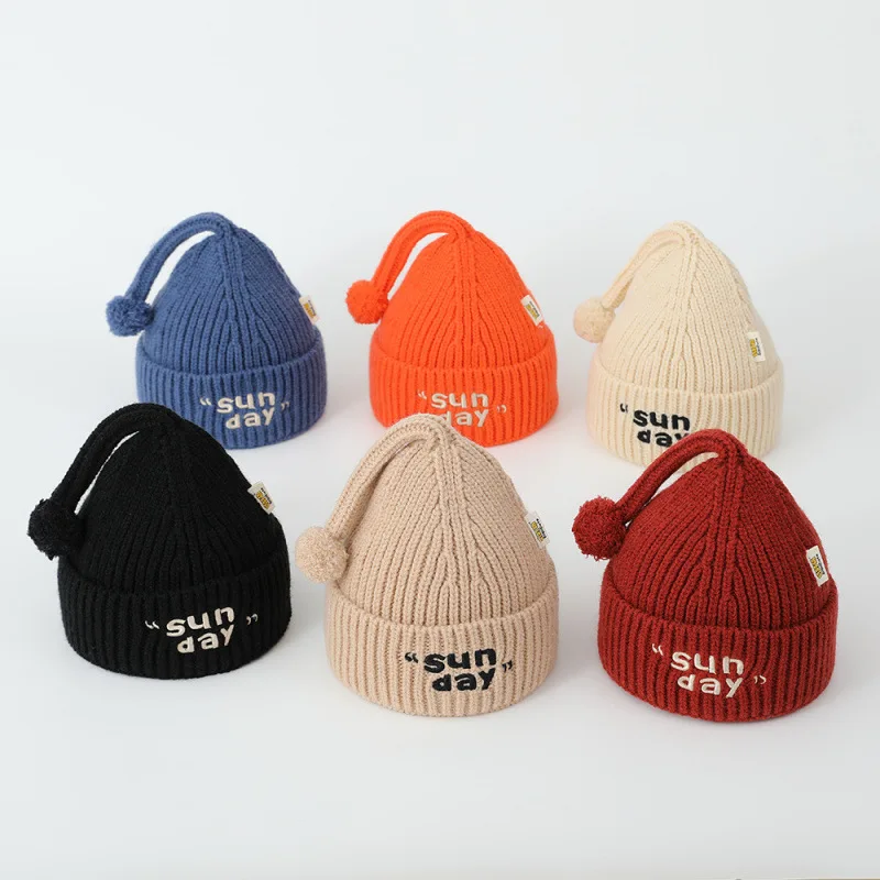 Милая детская шапочка с вышивкой букв, вязаная шапка, зимняя теплая детская пуловерная шапка для детей 0-1 года, однотонная шерстяная вязаная крючком шапочка для мальчиков и девочек
