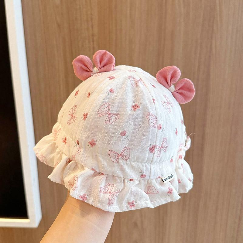 Милая детская шляпа-ведро с бантом и принтом в виде мультяшного банта, детская шапка-рыбак, летняя хлопковая детская шляпа от солнца для девочек розовый