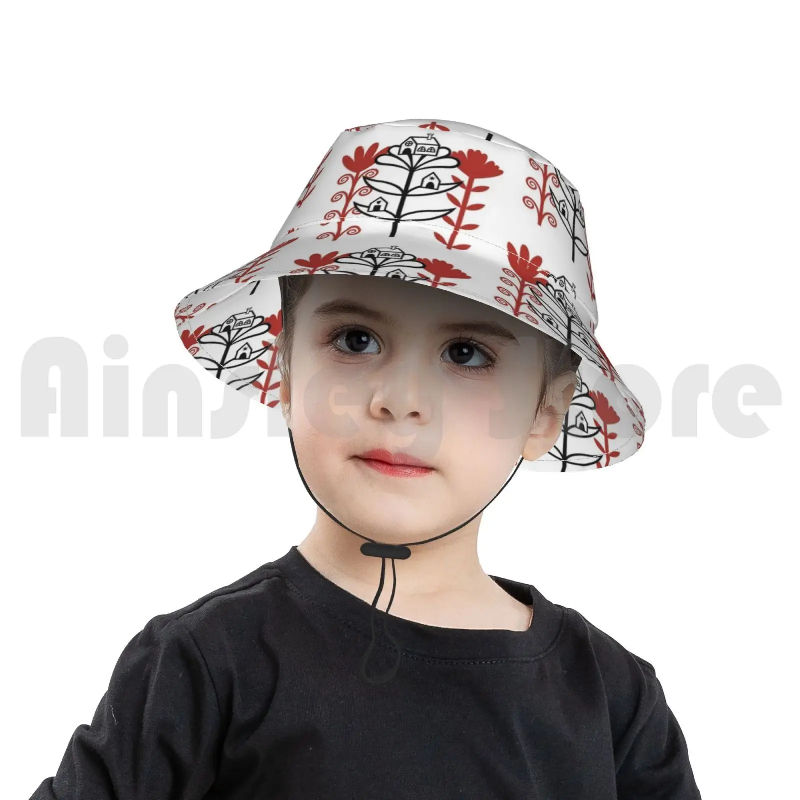 Милая домашняя цифровая иллюстрация с изображением дома в стиле "Сказка", сидящего на цветах, (черная и красная), Солнцезащитная шляпа, склад...