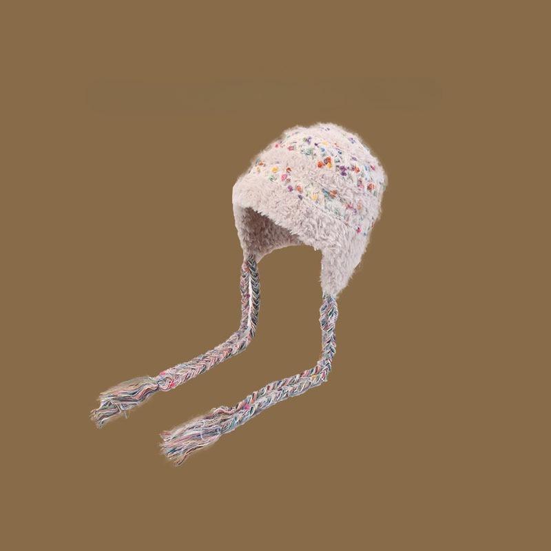 Милая женская вязаная шапка в корейском стиле, красочная, с флисовым узором «снежинки», ручной вязки, с завязками, осенне-зимняя, теплая One Size