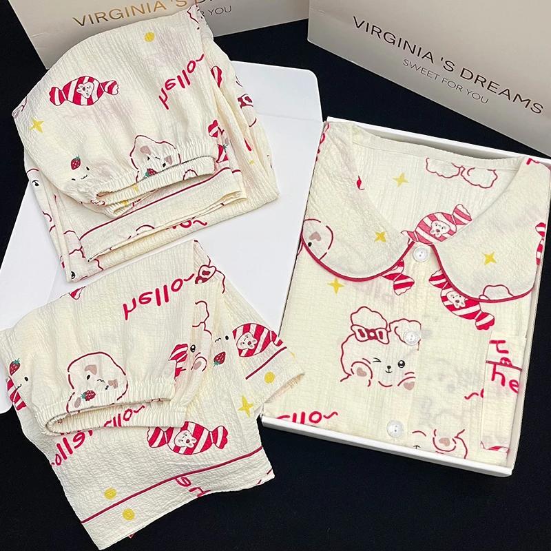 Милая женская пижама из 3 предметов с воротником-бэбидолл, мятая ткань, летняя домашняя одежда с цветочным принтом XL