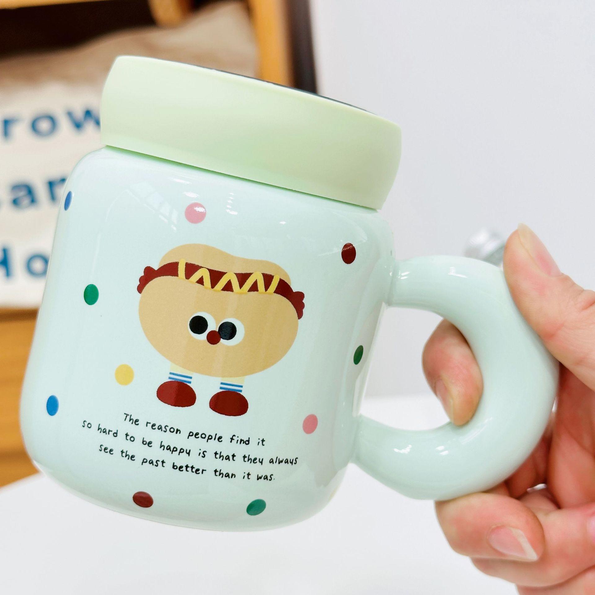 Милая керамическая чашка с крышкой, кружка для девочек, большая емкость, подарочный набор, чашка, сувенир, подарок детям 330ML