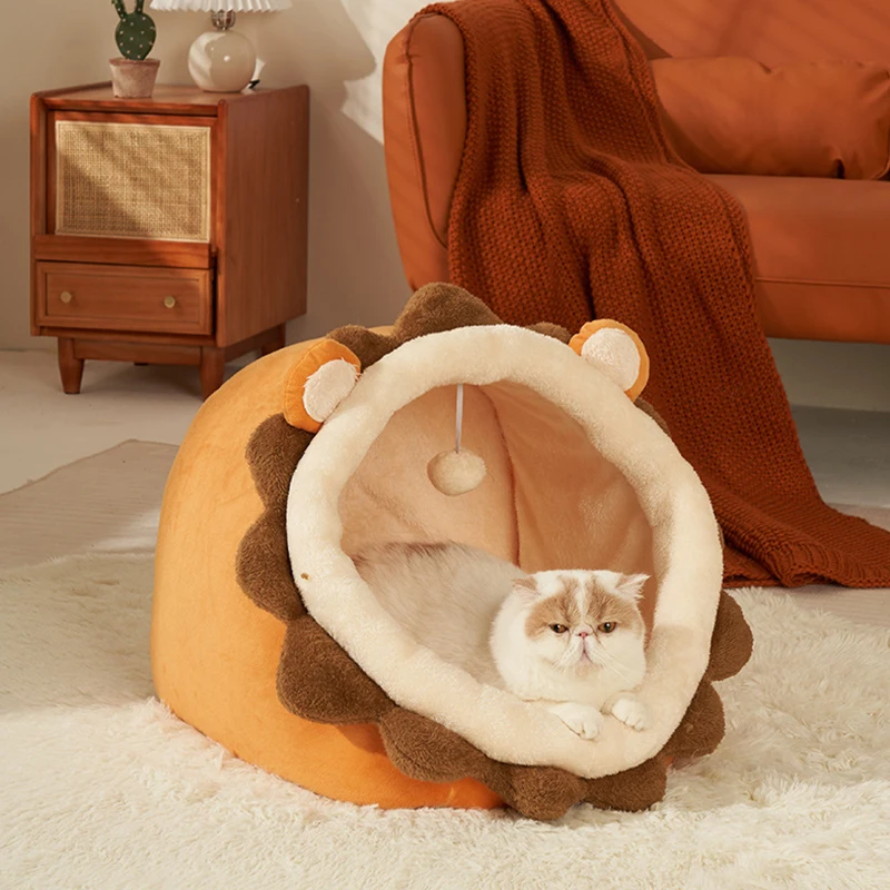 Милая кошачья кровать, теплая корзина для домашних питомцев, уютная котята, полузакрытый домик для кошек, для маленьких собак, мягкая моющаяся Лежанка для кошек