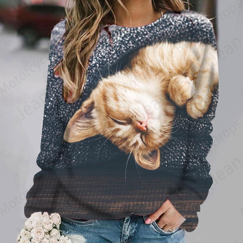 Милая кошачья 3D-печать с капюшоном Женская мода с капюшоном с круглым вырезом Женская толстовка Осень-зима Пальто с изображением животных Одежда для девочек Kawaii Hoodie Girl XL