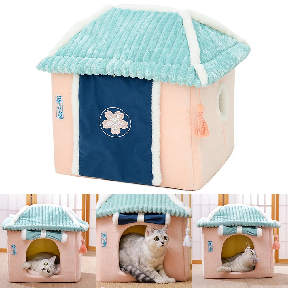 Милая кровать для кошек зимняя теплая Всесезонная гнездо для домашних животных съемный моющийся дом палатка товары для домашних животных з...