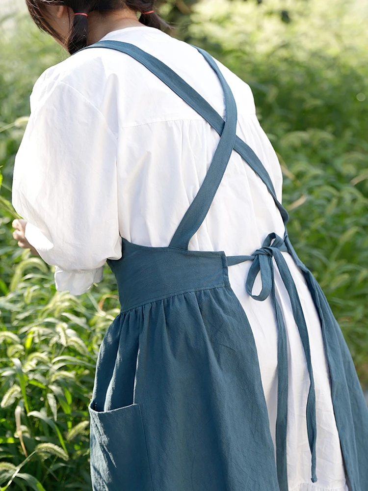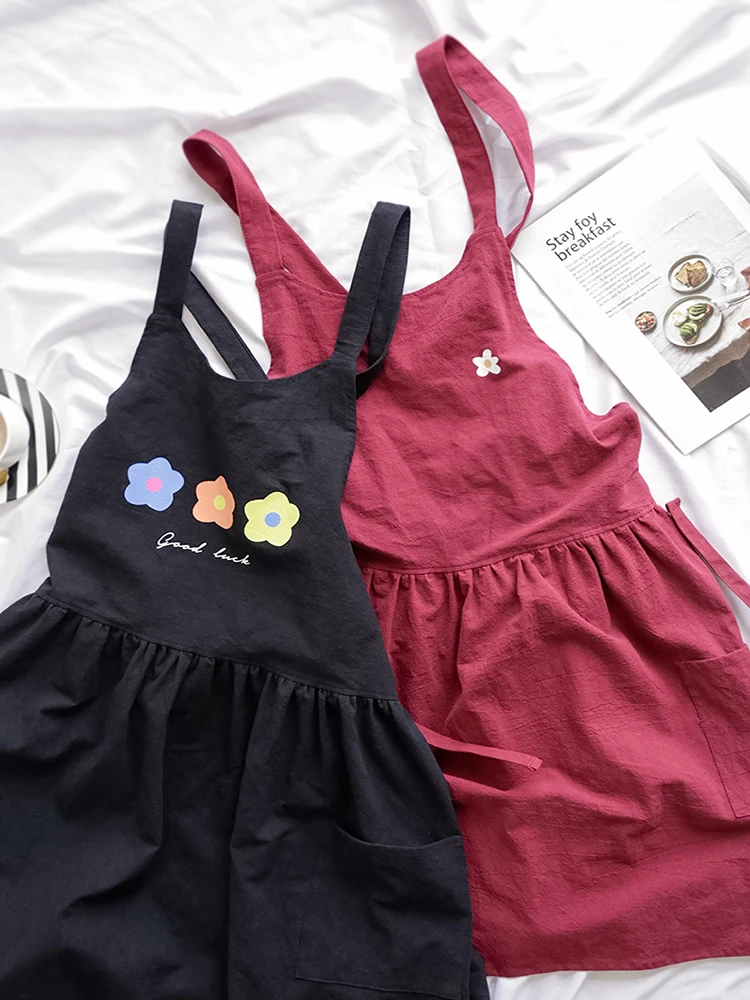 Милая маленькая Цветочная фартук из хлопка и льна, дышащая домашняя одежда для защиты от загрязнения, для кухни, маникюрного салона, одежда ...