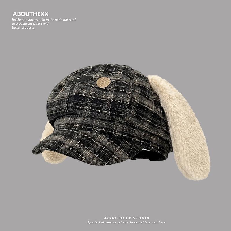 Милая маленькая собачка плюшевая ушастая клетчатая восьмиугольная кепка для детей новая весенне-осенняя беретка универсальная кепка газетчика тренд M(56-58cm)