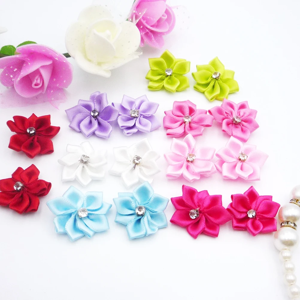 50 pcs Diamond Flower Headbands Hair Bands Cute for Newborn Girls Party Shower Gift Cloth Material Rhinestone