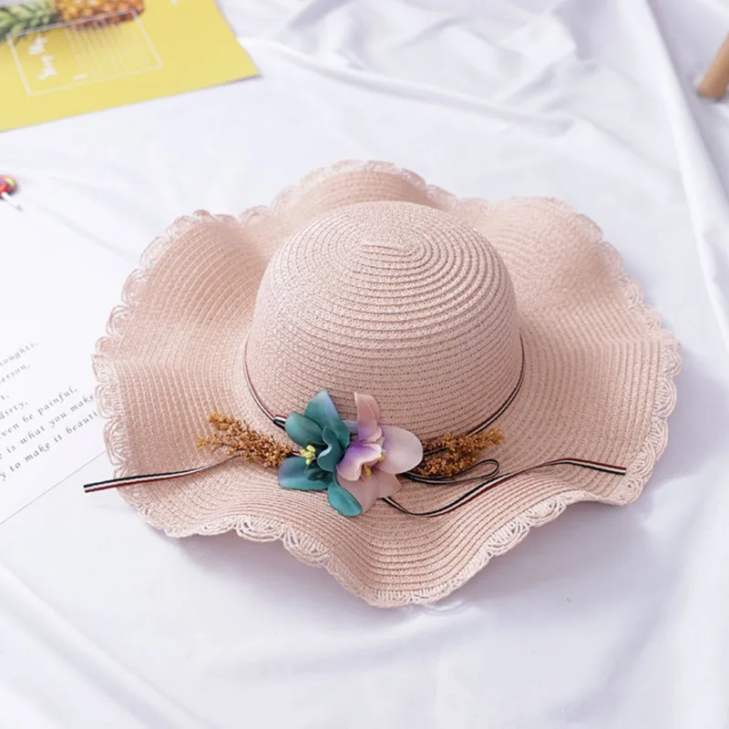 Милая модная детская Солнцезащитная шляпа для девочек; Летние пляжные соломенные шляпы с цветочным рисунком; От 4 до 8 лет с плоской подошвой...