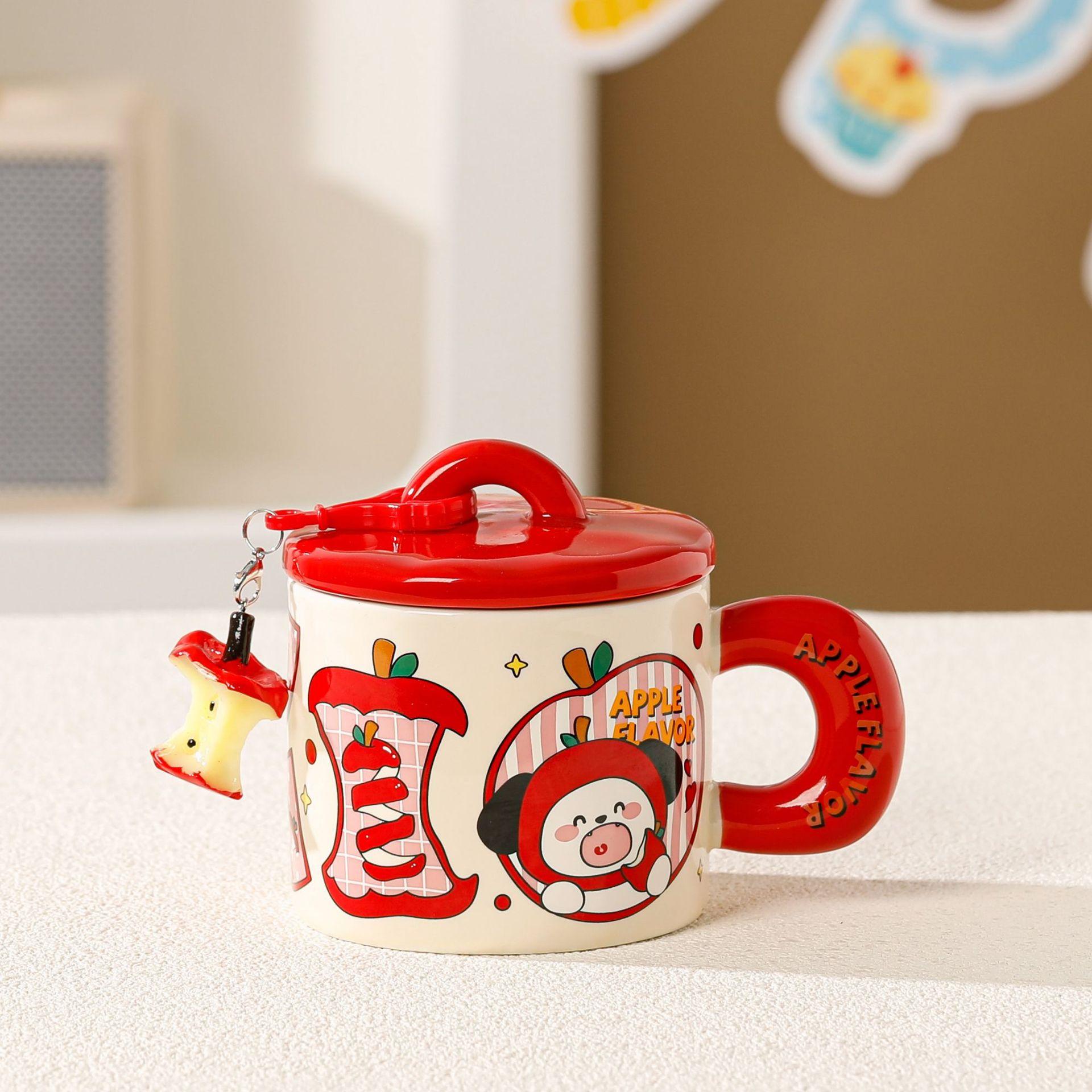 Милая мультяшная кружка-яблоко с животным, офисная, с высоким дизайном, чашка для воды с крышкой, чашка для завтрака, сувенирный подарок на день рождения 400ML