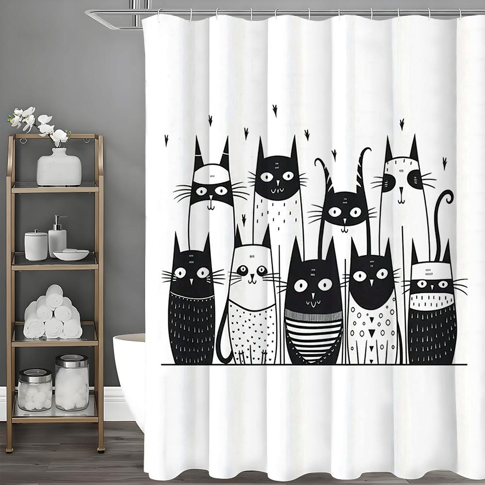 Милая мультяшная черно-белая кошка занавеска для душа, декоративная занавеска для душа для ванной, водонепроницаемая занавеска для душа с крючками 90*180cm