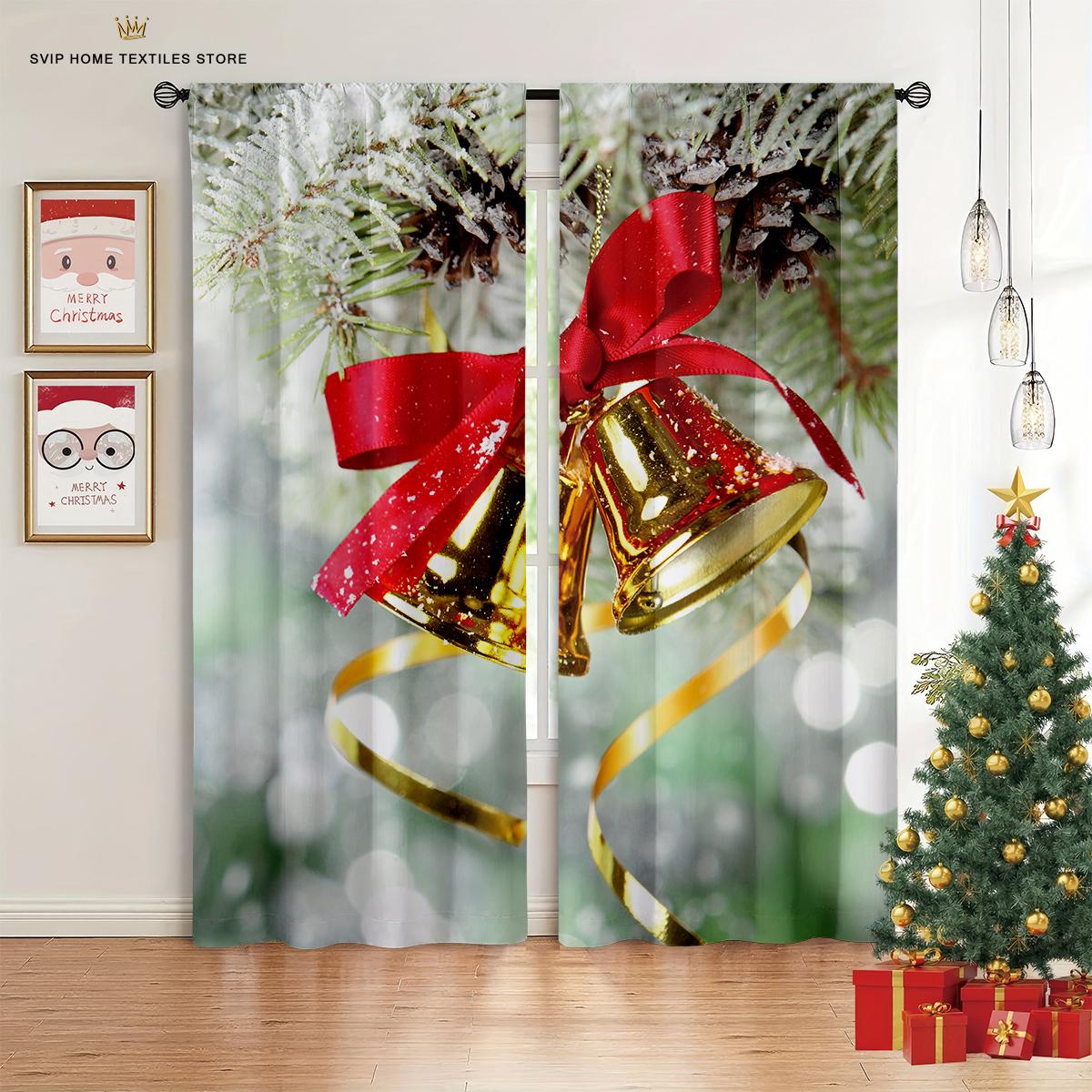 Милая мультяшная штора с принтом Санта-Клауса, кулиска для карниза, спальня, гостиная, столовая, рождественское украшение, набор из 2 штук W50X130H(CM)X2PCS&Rod pocket