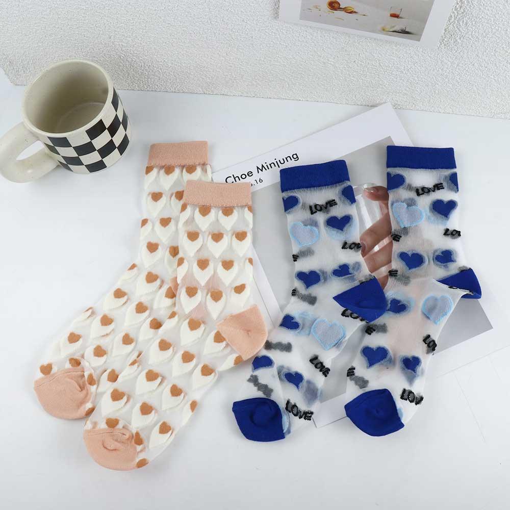 Милая новинка корейские сетчатые вертикальные полоски стеклянные шелковые носки женские носки-трубы чулочно-носочные изделия Love Heart