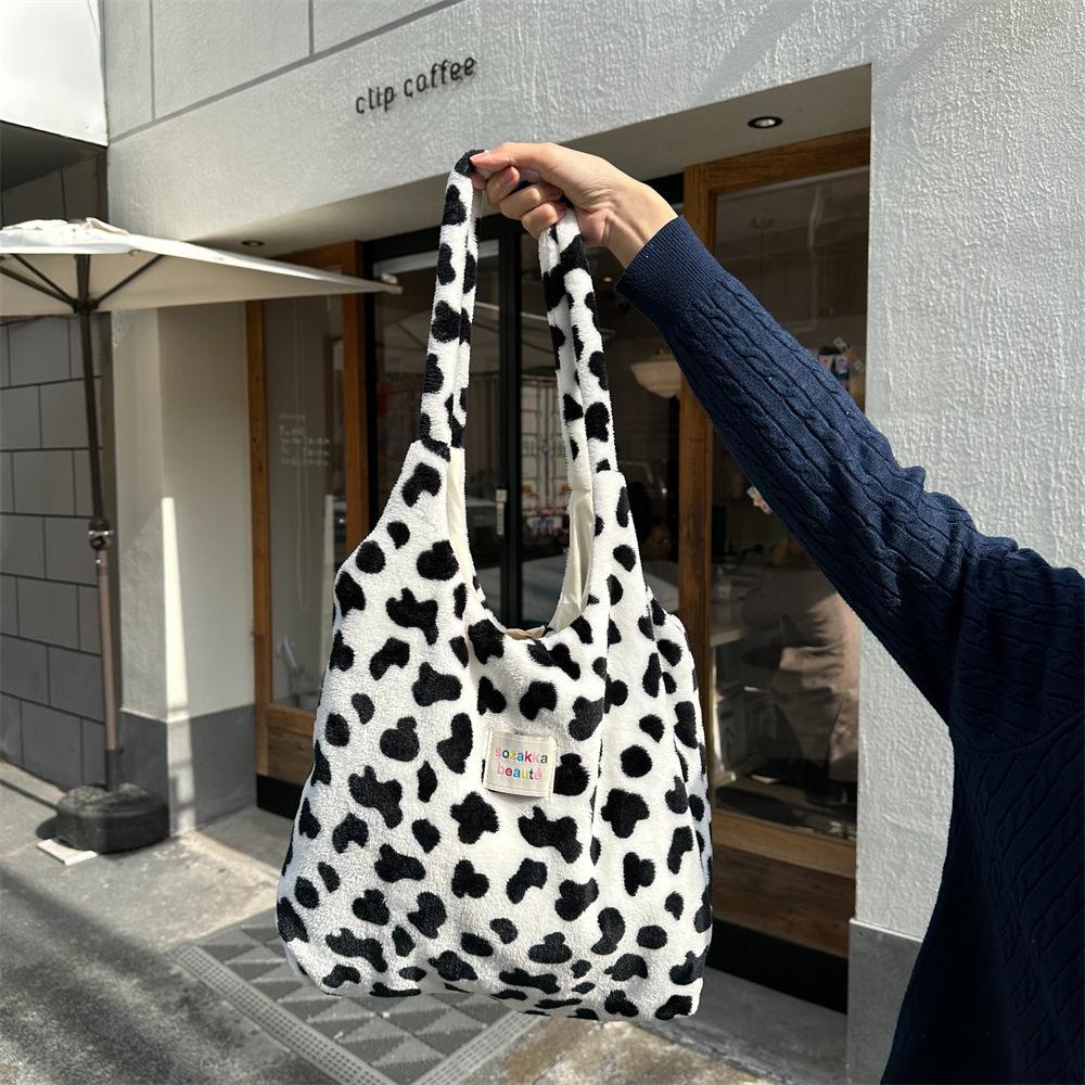 Милая плюшевая сумка с рисунком коровы, осенне-зимняя, вместительная, холщовая, жилетная, женская, классическая, зимняя сумка