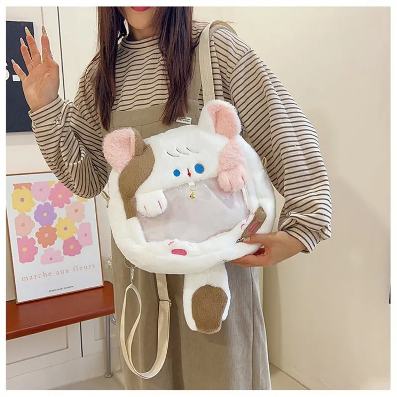 Милая плюшевая сумка-тоут с котенком, дизайнерская роскошная женская сумка, стильная большая вместительная школьная сумка через плечо, модный женский рюкзак