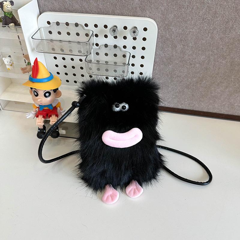 Милая пушистая маленькая сумка женская новая модная пушистая сумка для мобильного телефона маленькая квадратная сумка осень-зима сумка-мессенджер для поездок на работу чёрный