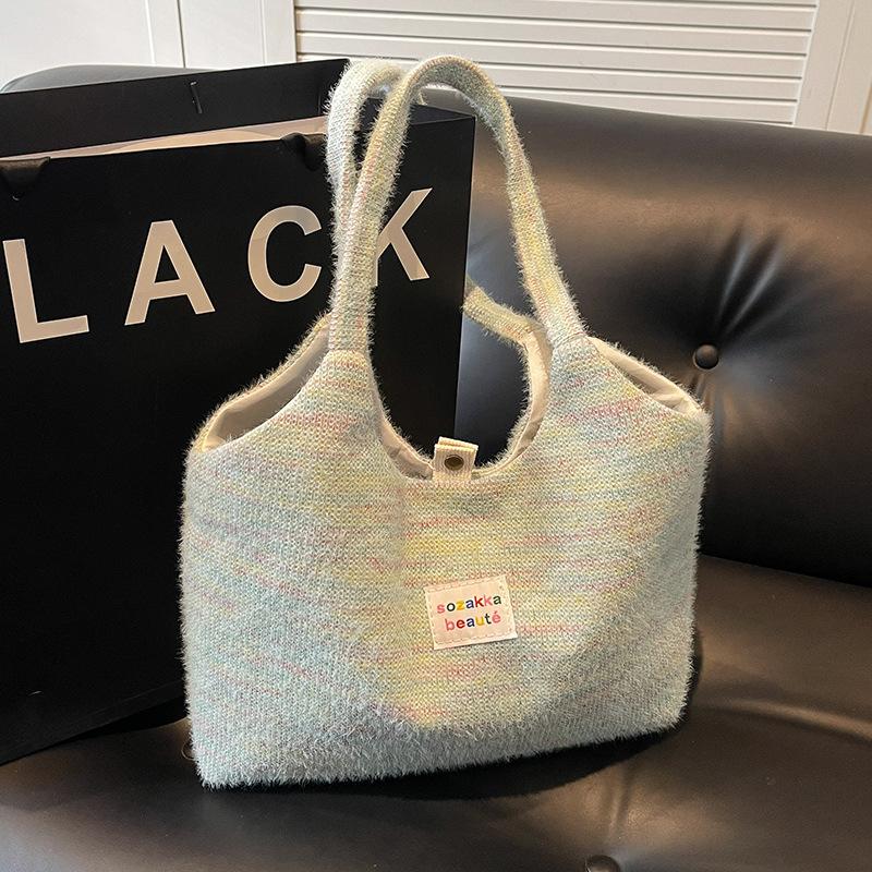 Милая пушистая тканая сумка-тоут, сезонная большая вместительная сумка для книг, сумка через плечо из парусины зелёный