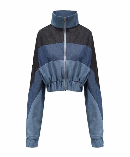 zip up cropped denim jacket women long sleeve autumn coats female turndown collar patchwork crop jeans jackets woman outwear4665682, Black;brown