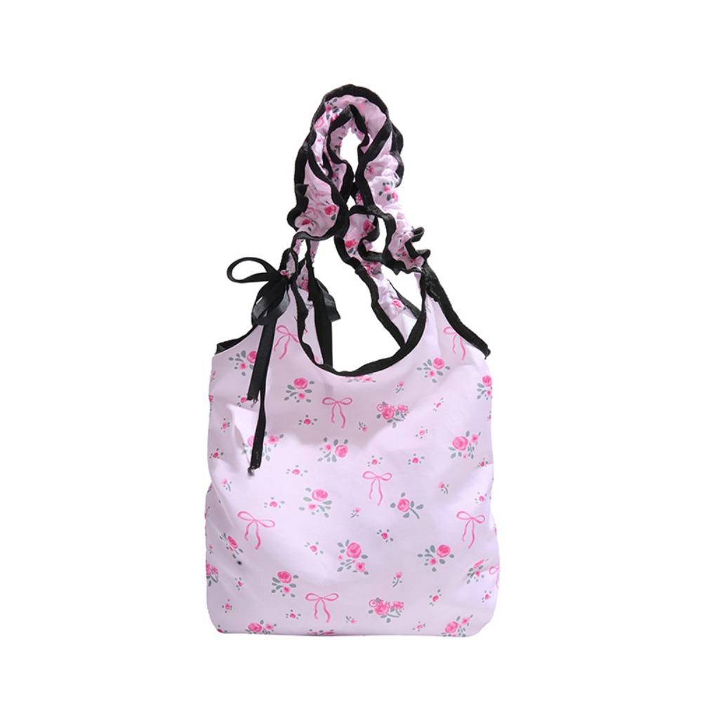 Милая сумка на плечо с цветочным бантом, большая вместимость, нейлоновый шоппер, сумка-тоут с плиссированным ремешком, лето Style 2
