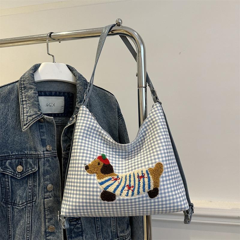 Милая сумка-тоут с щенком, популярная универсальная клетчатая сумка через плечо большой вместимости, маленькие и много рюкзаков One Size