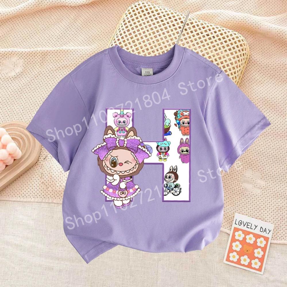 Милая футболка с принтом букв Labubued, хлопок, лето, уличная одежда, короткий рукав, одежда для девочек, топ, мультяшная детская одежда, для малышей 140