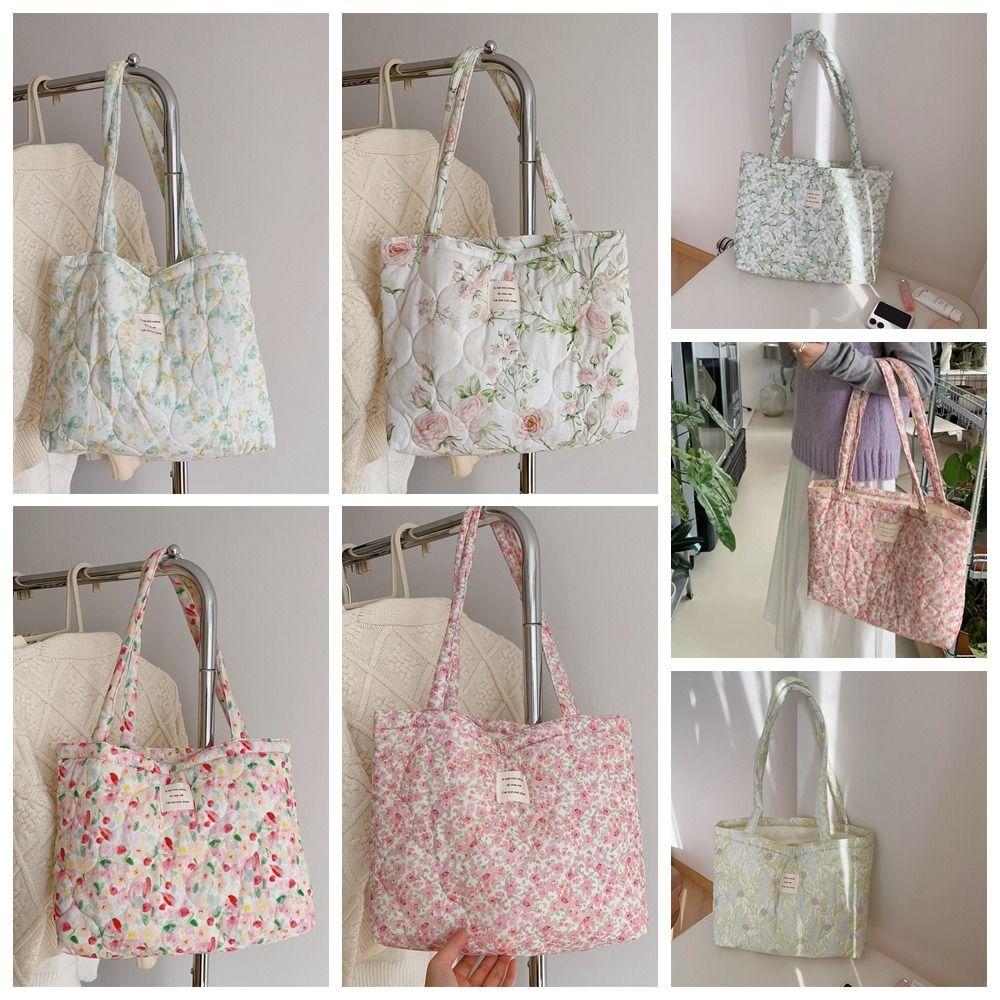 Милая цветочная сумка на молнии из парусиновой ткани, сумка на плечо, универсальная хлопковая сумка-тоут с цветочным принтом для школы style6
