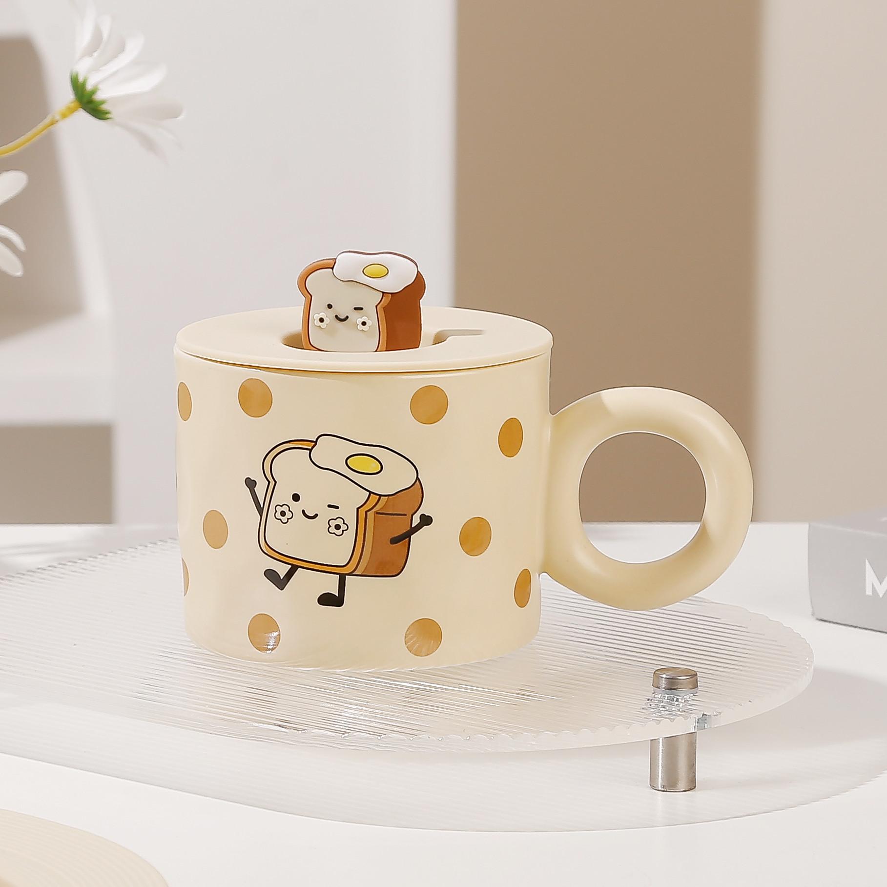 Милая чашка для чая с молоком, керамическая чашка с сердечком для девочки, мультяшная кружка с крышкой, персонализированный подарок, оригинальные чашки для завтрака, кофе, рождественские кружки 401-500ml