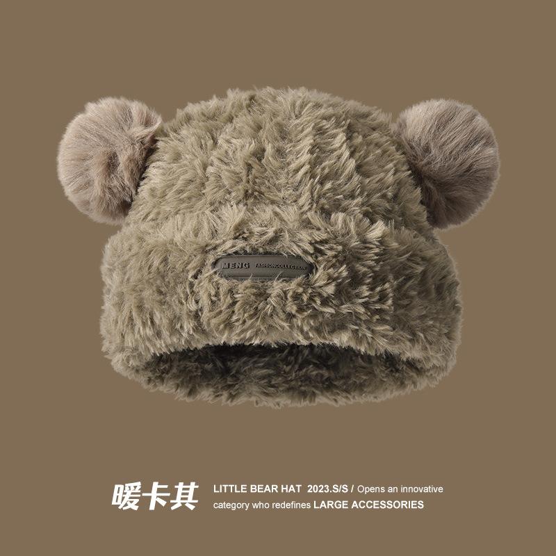 Милая шапка из шерсти медведя, женская зимняя утолщенная плюшевая теплая плюшевая лысая шапка на осень и зиму, большая окружность головы, вязаная шапка M(56-58cm) хаки