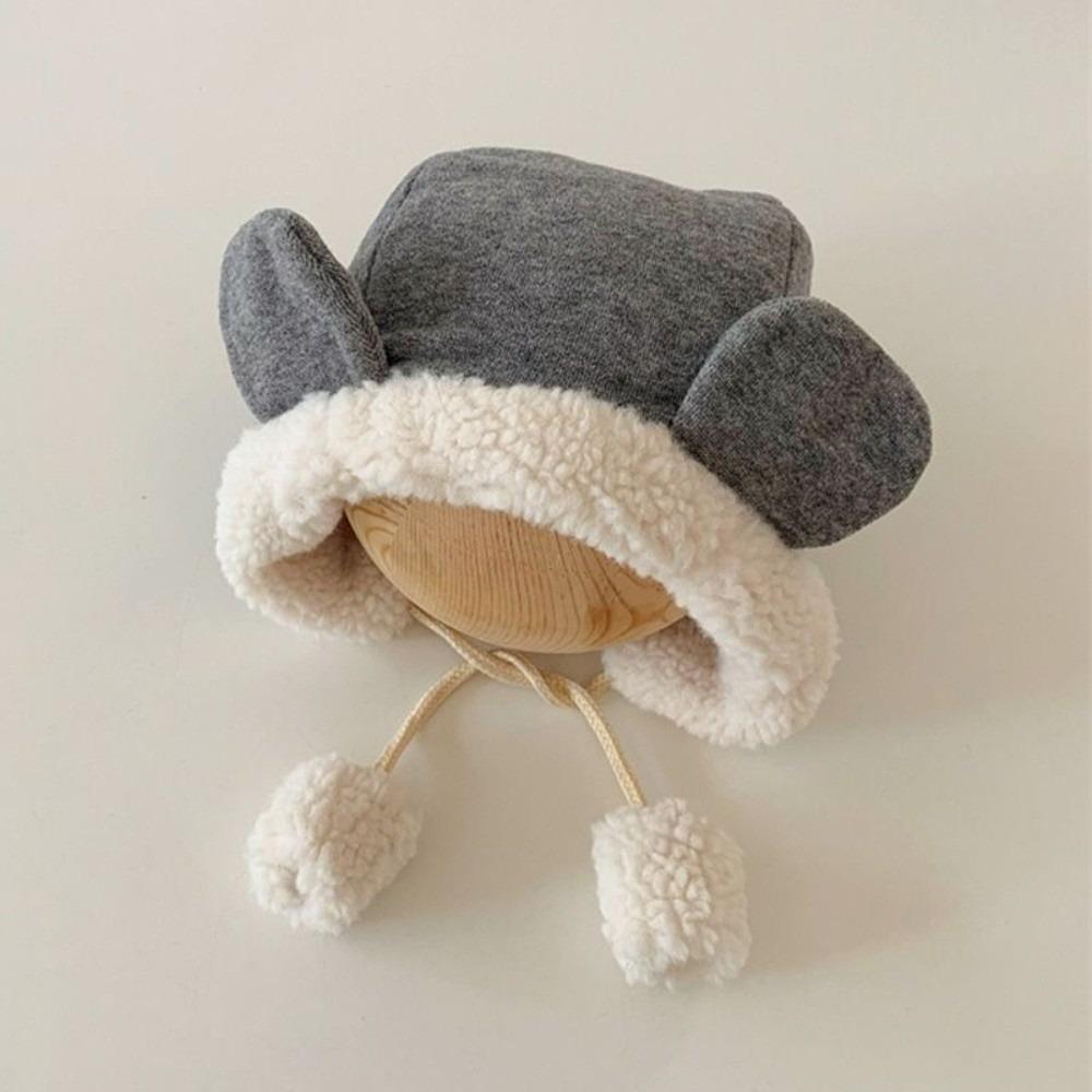 Милая шапка с медвежьими ушками, зимняя шапка для защиты ушей, мягкая детская шапка-бини для малышей серый