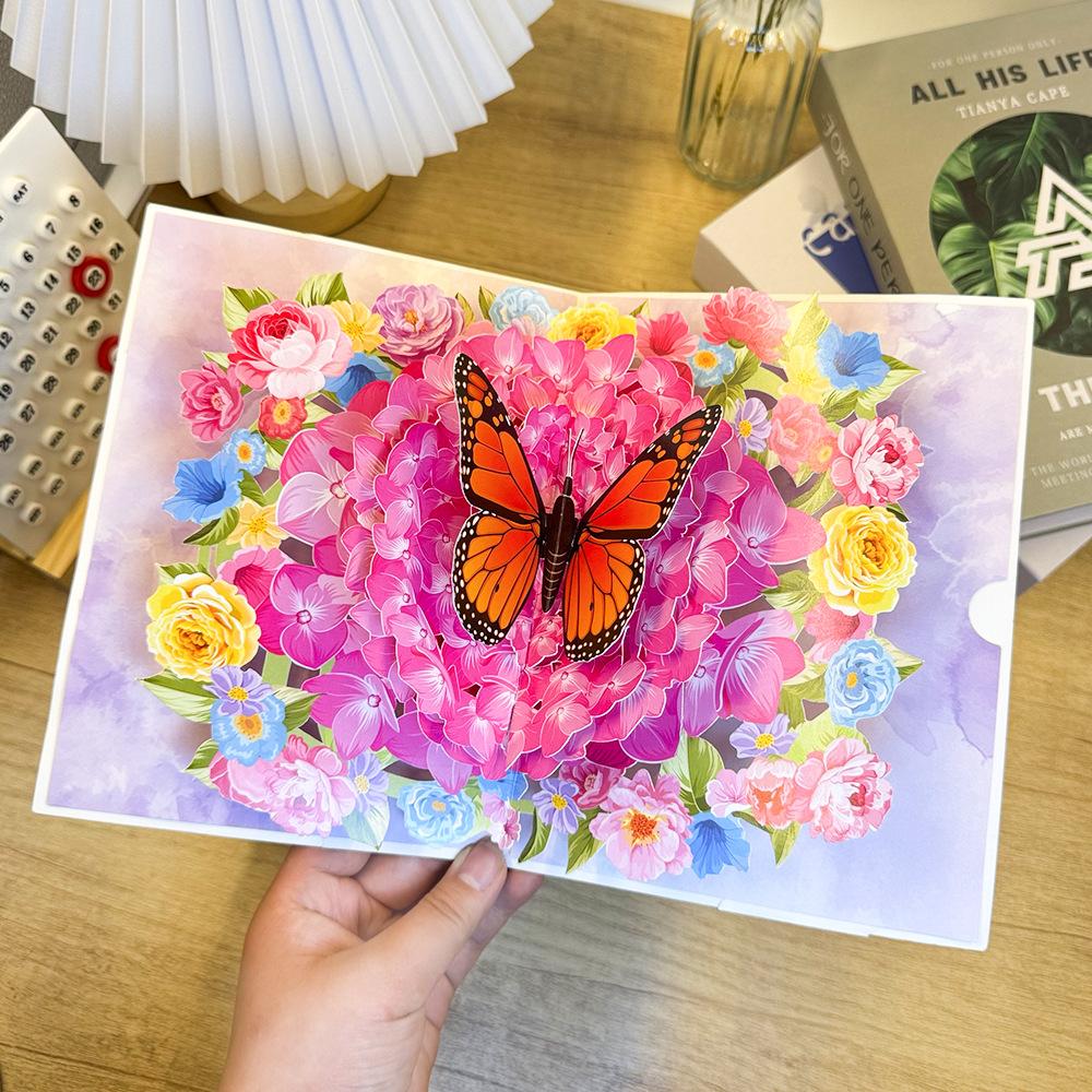 Милая 3D открытка-раскладушка с бабочкой и гортензией - Ручная работа, элегантная цветочная поздравительная открытка с конвертом на день рождения, свадьбу
