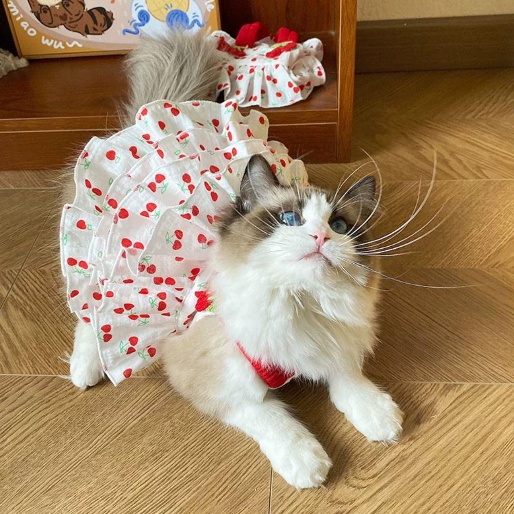 Милий песик Сукня на підтяжках з вишневим принтом Одяг для тварин Креативна щеня Спідниця принцеси для маленької собаки Кота M