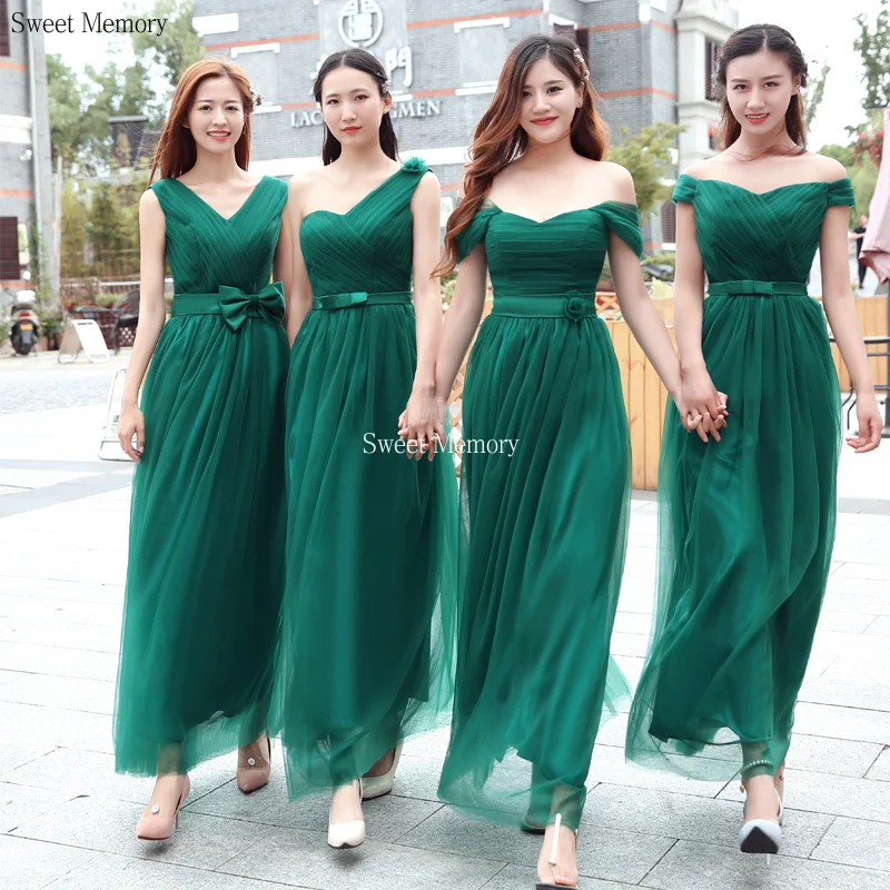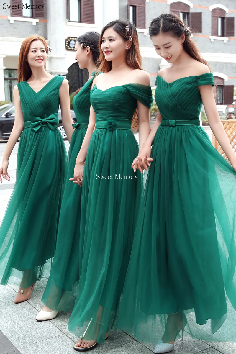 Милое Платье для подружки невесты, длинное зеленое платье из тюля на шнуровке для свадебной вечеринки
