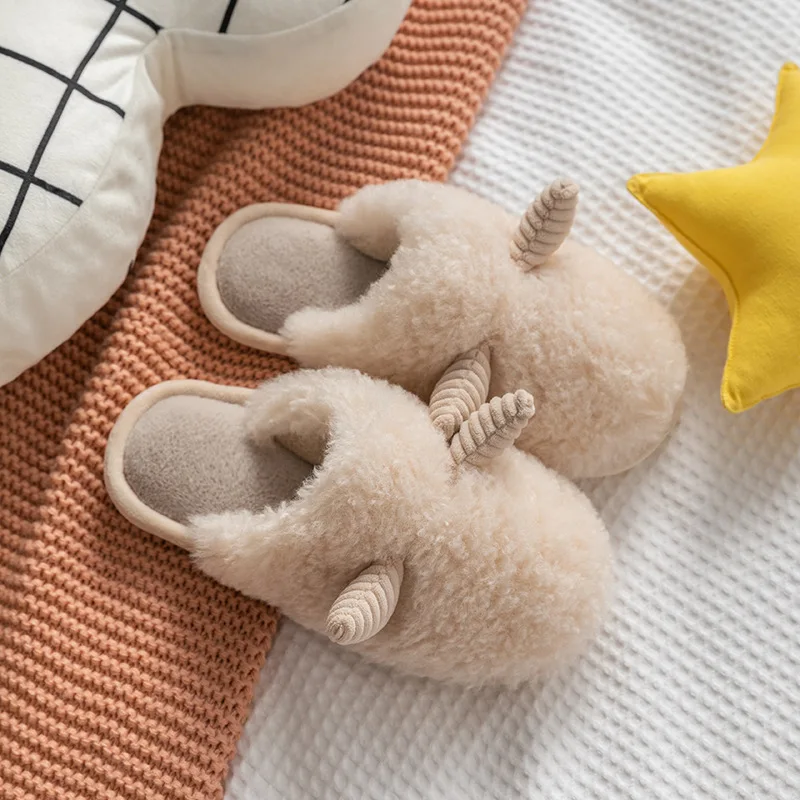 Милое животное Телец Рог теплые плюшевые женские тапочки; Зимняя обувь для пары; Домашняя спальная обувь на меху для девочек плоские, Нескол...