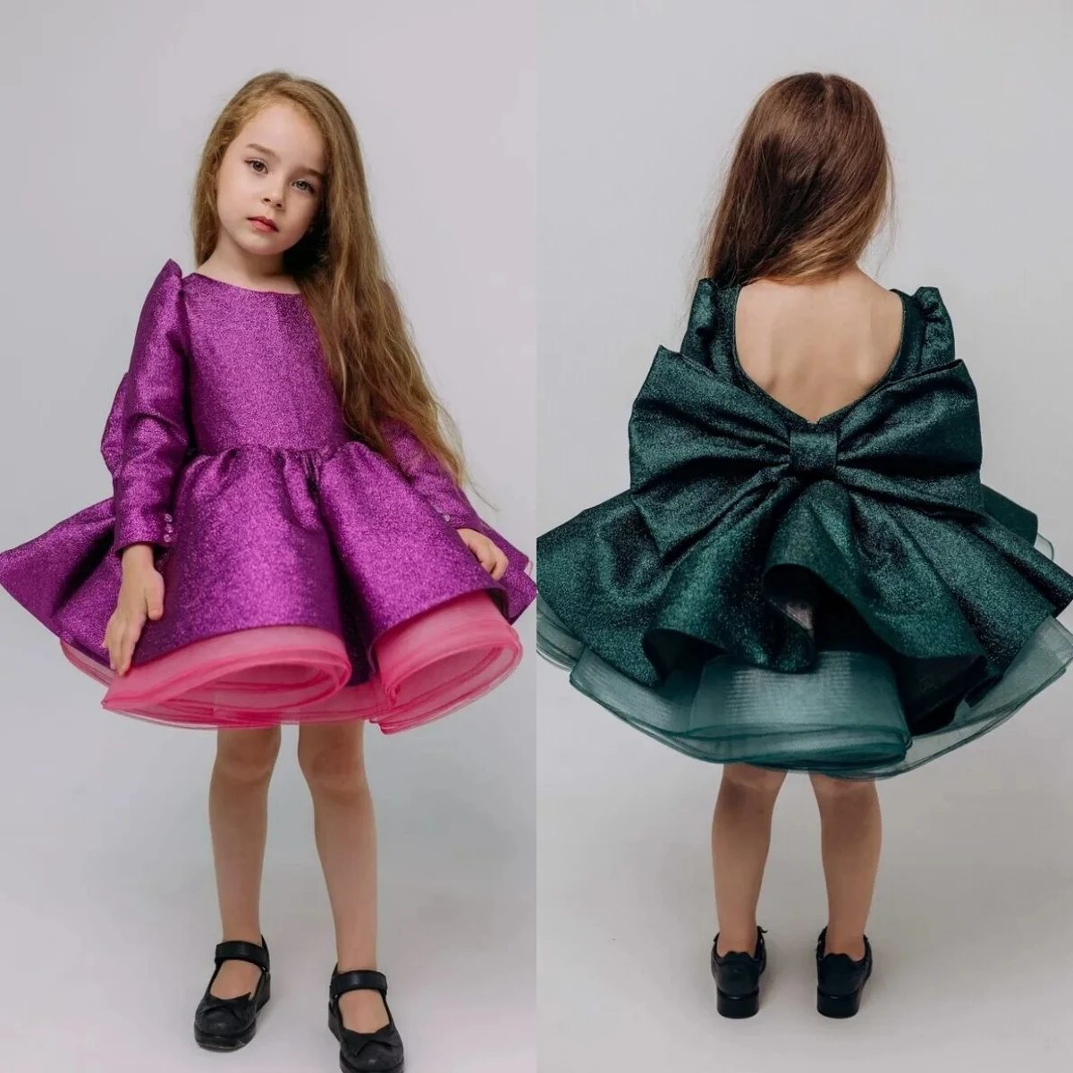 Милое зеленое или красное платье с цветочным узором для девочек, большой пояс с бантом и длинными рукавами, свадебное платье принцессы для красоты, детские платья для дня рождения и причастия