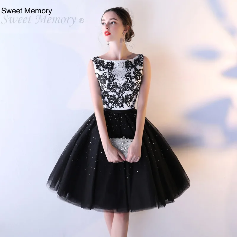 Милое короткое черное Тюлевое платье для выпускного вечера с эффектом памяти, женское винтажное кружевное бальное платье со стразами, женское вечернее платье