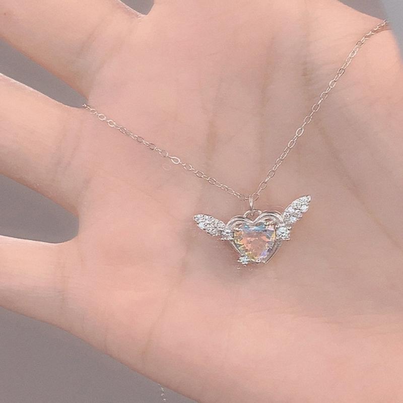 Милое ожерелье с крыльями в форме сердца для женщин и девочек, роскошное ожерелье с подвеской в виде сердца и циркония, изысканная простая цепочка на ключицу, ювелирные изделия, подарки