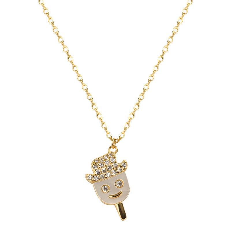 Милое ожерелье с кулоном в виде улыбающегося лица в виде эскимо, инкрустированное ракушками, бриллиантовая цепочка для ключицы, джентльменское мороженое, новый стиль
