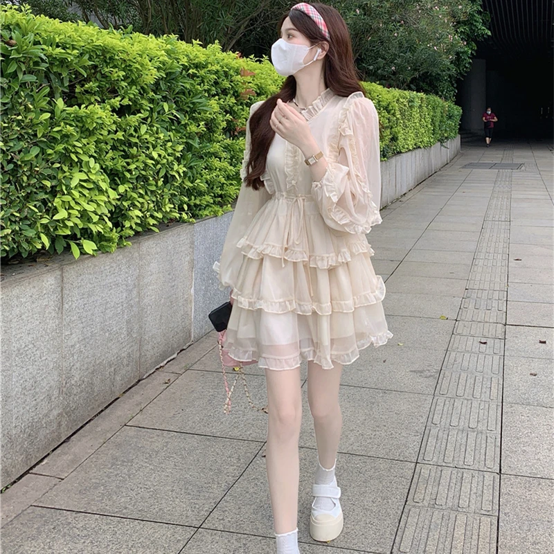 Милое элегантное платье с V-образным вырезом и оборками на талии во французском стиле, осень 2022, цельное вечернее мини-платье, женская одежда...